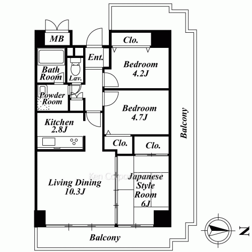 3 (BR:4.7J / BR:4.2J / Tatami Rm:6.0J / LD:10.3J / K:2.8J)