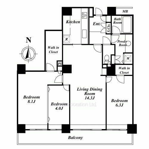 Keiyo Line Hacchobori Sta. / 12 min. walk