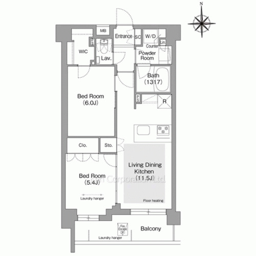 - Counter kitchen, Closet, Walk-In Closet, Pent floor unit, Floor Heating